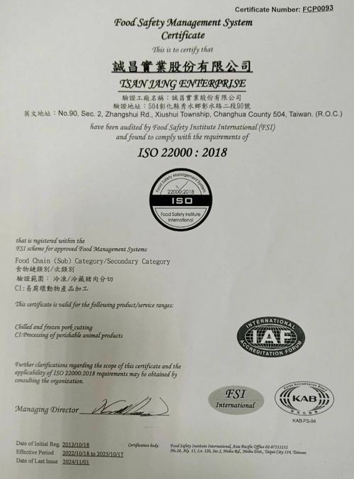 我們十分重視肉品衛生與安全,嚴格把關每一個肉品加工製造的環節,並通過ISO22000驗證。未來,誠昌會持續秉持穩健踏實的信念,致力提升產品研發能力,推出更多新鮮、美味、衛生的優質食品,提供更多元的產品選擇及服務。